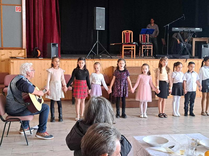A Sajógömöri Magyar Tannyelvű Alapiskola kisdiákjai kedves műsorral köszöntötték a falu nyugdíjas lakosait 2025. október 22-én.