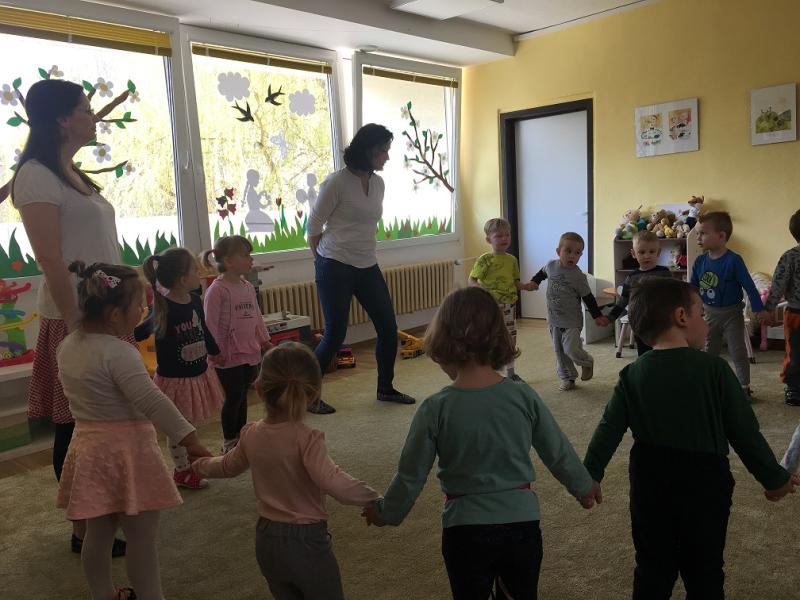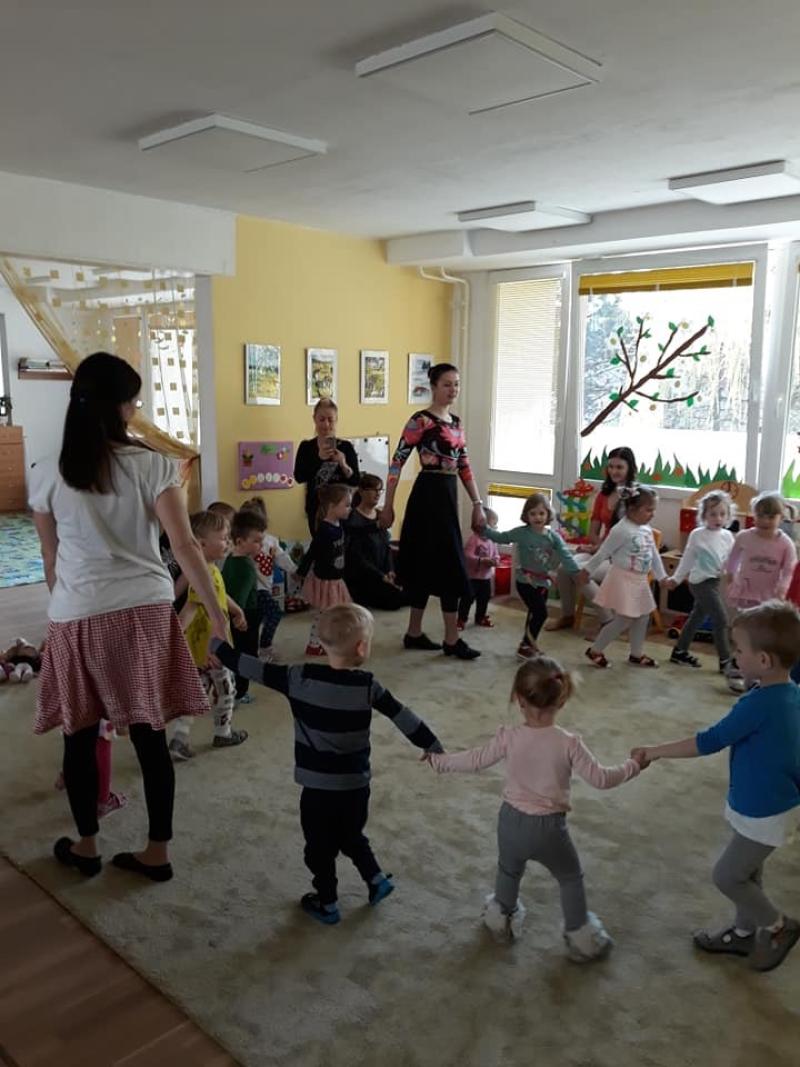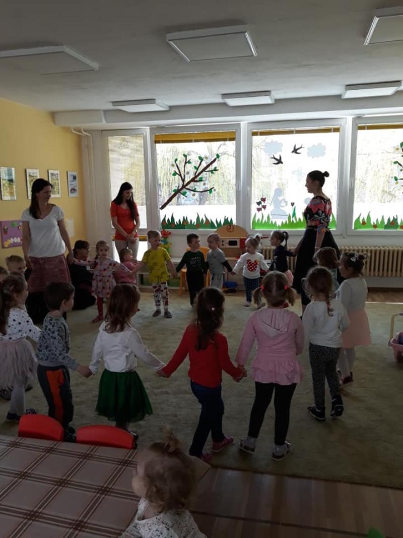 A gyerekek Lukács Katalin és Dobos Beáta óvónők vezetésével bemutatták, hogyan tanulnak, mi mindent csinálnak egy napjuk során az óvodában. Szabó Nóra is eljött, aki hittant tart nekik játékos módon minden héten. Velem pedig a népi játékokat mutatták be. Így az óvoda megmutathatta sokszínűségét, különböző arcait.