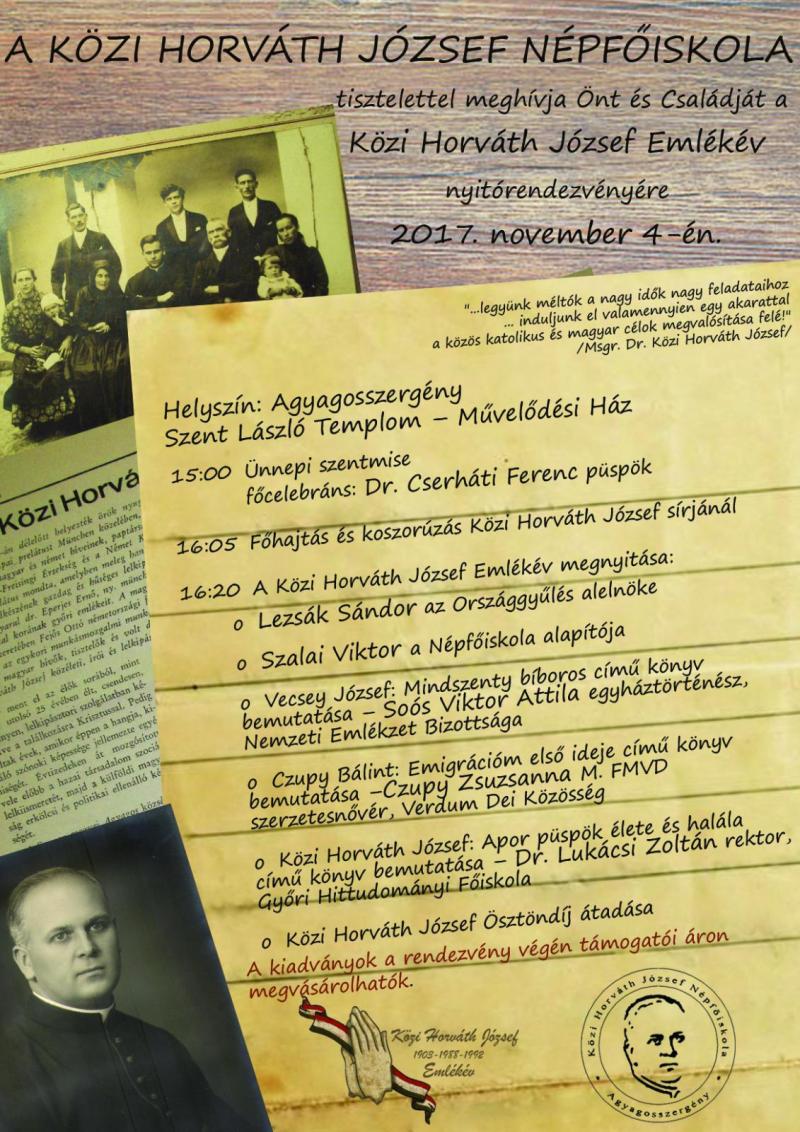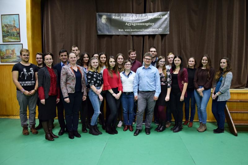 Szalai Viktor meghívásának eleget téve 2017. november 3-5. között Szilágysomlyó is képviseltette magát a Közi Horváth József Népfőiskola "Ifjúság, Közösség, Megmaradás" elnevezésű programján. Mentorom egy négy fős csapattal érkezett a rendezvényre, jómagam és két somlyói származású egyetemista fiatal, Kőműves Viktória és Tóth Levente társaságában. Csodálatos hétvégét töltöttünk el együtt Agyagosszergényben anyaországi, felvidéki és kárpátaljai ifjúsági szervezetek képviselőivel, s mindeközben olyan élményekkel és tapasztalatokkal gazdagodtunk, melyek egész életünkben elkísérnek bennünket.