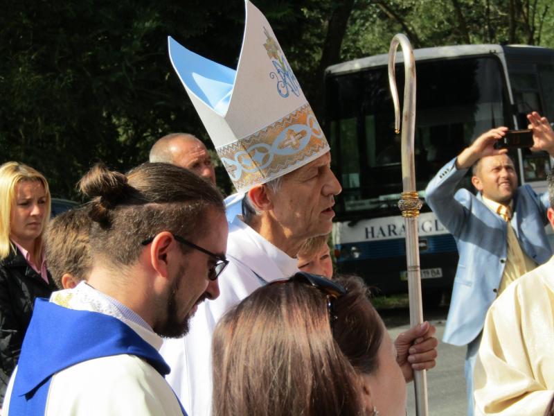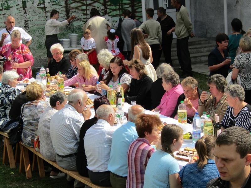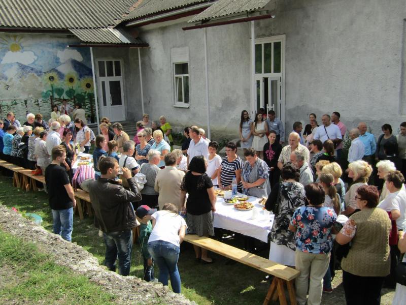 A szép számban összegyűlt híveket - az iskola udvarán megterített asztalokhoz - agapéra hívták. Sok fiatal család él a településen, ezért felmerült az igény egy olyan közösségi épületre, ahol a falu apraja-nagyja együtt tölthetné a szabad idejét. Püspök úr biztatta őket, miszerint merjenek álmodni és kérni, hiszen a templom megépítésének terve is így kezdődött.
