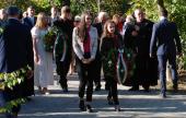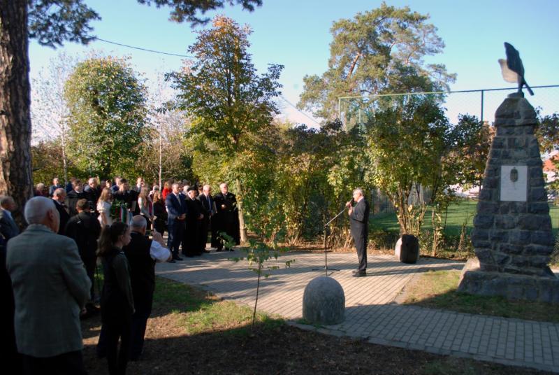 A templomi ünnepség után a templom kertjében található emlékműnél emlékeztek meg a háborúk és 1956 áldozatairól, majd dr. Grezsa István miniszteri biztos, Soós Zoltán csíkszeredai konzul, illetve Ugron-Szekeres Villő és Nagy Emese, a Petőfi Sándor Program ösztöndíjasai, valamint a helyi fiatalok megkoszorúzták azt. A három, nemzeti szalagos koszorú elhelyezése után, az emlékmű mellé fenyőfát ültettek, majd fogadással, kötetlen beszélgetéssel és a Bíborka Néptáncegyüttes fellépésével zárult a a színvonalas esemény.