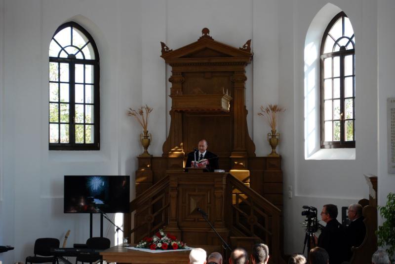 Október 20-án a kívül-belül megújult Isten háza csordultig megtelt a gyülekezet tagjaival, helybéliekkel, számos egyházi és világi képviselővel, ahol együtt adtak hálát Istennek, hogy szándékában megsegítette ezt a közösséget. A gyülekezet a magyar kormány támogatásával fejezte be templomának renoválást. Az ünnepi istentiszteleten Ft. Kató Béla püspök keresztelt, majd hirdette az igét és liturgiát mondott Nt. Veress Róbert Gyula esperes. Az emléktábla avatása után köszöntőt mondott többek közt a helyi alpolgármester, magyarországi és romániai magyar parlamenti képviselők, politikusok, de volt köztük egyetemi tanár és más meghívott előadó is. Ünnepi műsorral készültek a helyi fiatalok és gyerekek, akik énekeltek és verset mondtak, és felcsendültek a szintén felújított orgona hangjai és természetesen nemzeti énekünk sem maradhatott el.