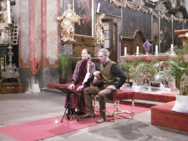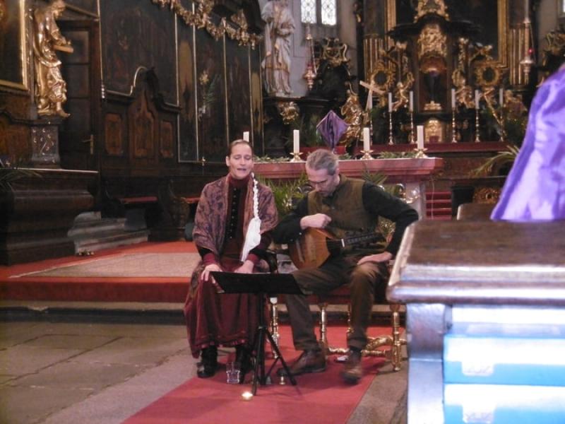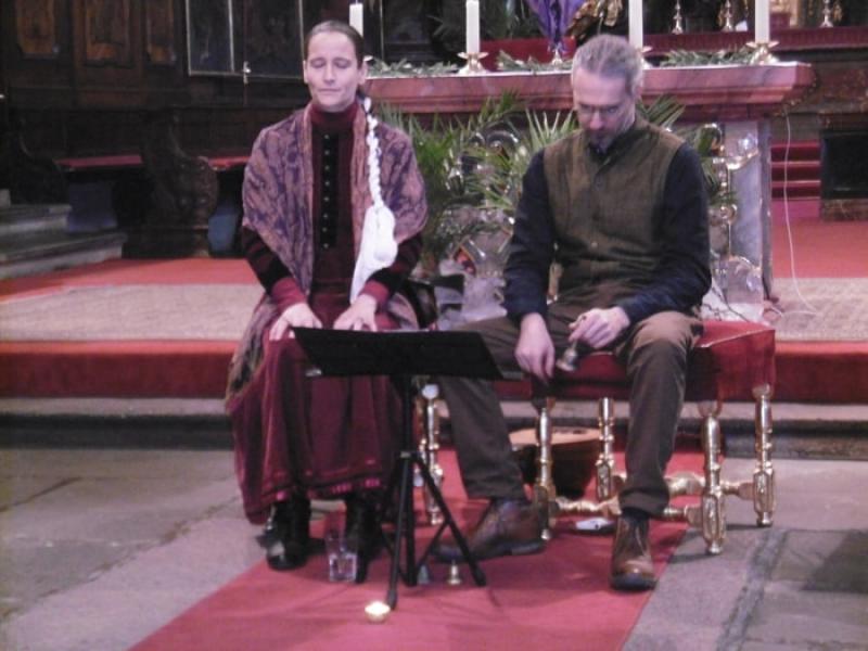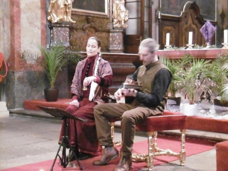 A Kobzos együttes (Navratil Andrea ének - Demeter László koboz) húsvétváró koncertjén a moldvai csángó hagyományban fennmaradt archaikus magyar szentes énekek csendültek fel saját, intuitív feldolgozásban, régizenei stíluselemekkel gazdagítva, újszerű zenei élményt kínálva.