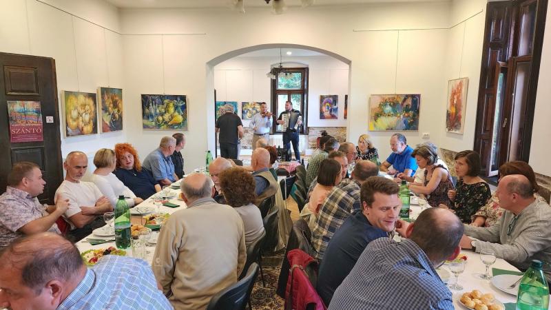 Az idei Teleki Napok alkalmából zenés borskóstolót tartottak a Teleki Magyar Házban: a kiváló borszakértő és gasztronómiai szakíró (mellesleg politológus és közíró) Borbély Zsolt Attila vezetésével, aki a Kárpát-medence legjobb borait a Kárpátia Borház kínálatából válogatta össze. Miközben kilenc borrégió kilenc borát kóstolgattuk a Móri Ezredestől az Ipolysági Kékfrankosig, a kellemes zenéről, hangulatról a zilahi Major Arnold (hegedű) és Báró Ádám (tangóharmonika) gondoskodtak.