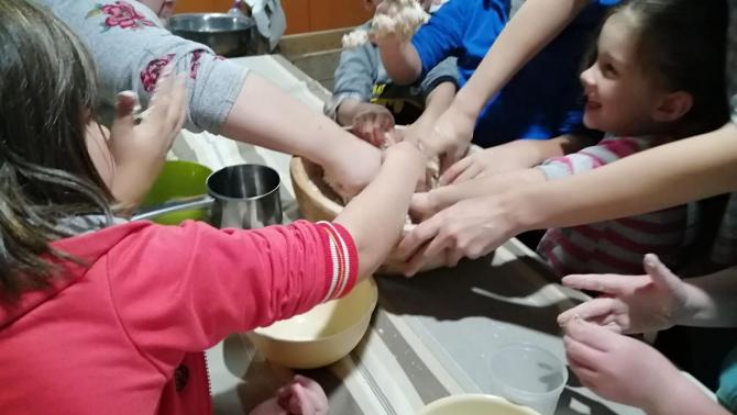 Gyermekkezek dagasztották be a halmágyi hálaadó istentisztelet kenyerét, melyből mindenki hazavitt egy darabot.