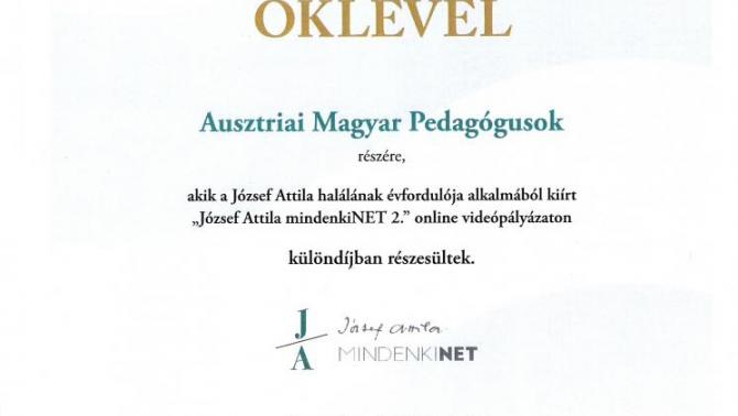 A Ferencvárosi Önkormányzat által kiírt „József Attila MindenkiNET 2.” online videó pályázaton különdíjat nyert az…