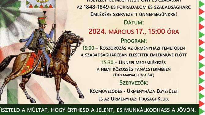 Koszorúzással, majd ünnepi műsorral emlékezett az 1848/49-es szabadságharc napjaira Ürményháza magyarsága. A…
