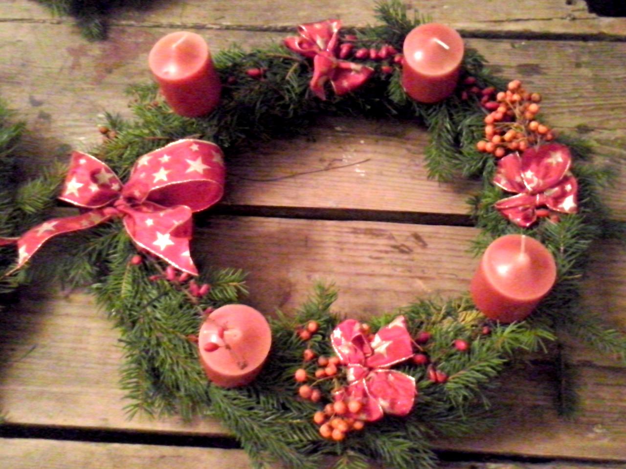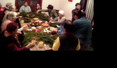Advent hagyományosan az év legcsendesebb időszaka. De az adventre való készülődés nálunk igen hangosan zajlott. Mindenkiben előbújt az a kisgyermeki énje, aki anno még szüleivel és nagyszüleivel énekelgetett otthon koszorú készítése közben. Így hát felidéztük azokat a nótákat, kántálásokat, amiket otthonról hoztunk. Szép lassan a rideg, borús kinti időt pillanatok alatt elfelejtettük. Bár manapság már közel sem olyan nyugalmas ez az időszak, mint amilyen egykor volt. A sütés-főzés, bevásárlás, ajándékok készítése és beszerzése az ünnepi készülődés része. Mi nem főztünk ezen a napon semmi különlegeset, csak teát és egy csomó zsíros kenyeret kentünk sok-sok hagymával a tetején. Viszont ettől olyan erőre kaptunk, hogy 2 óra alatt tizenegy darab koszorút sikerült elkészítenünk.