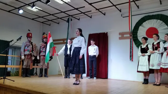 A megemlékezésen hallhattunk Petőfi Sándor verset és Kerekes Kinga, Szabó Helga gimnazista lányok éneklését, majd a koszorúzás a Magyar Himnusszal zárult.