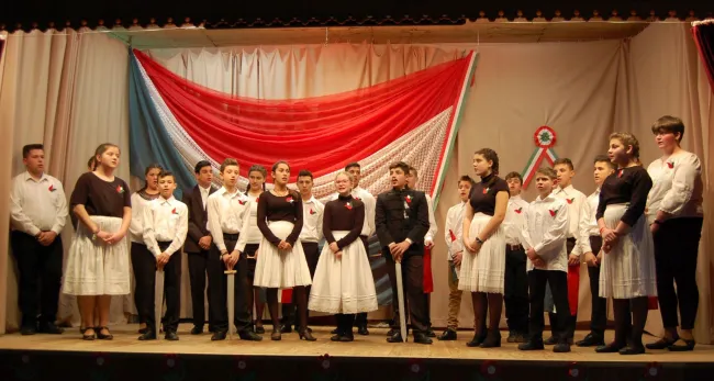 A megemlékezés a zsoboki iskola V-VIII. osztályos diákjainak ünnepi műsorával folytatódott, amelyben megidézték a '48-as eseményeket, a forradalom kitörésének hírüladását az osztrák udvarban, majd megmutattak néhány képet a pesti utcákról, Táncsics kiszabadításáról. A Gál-Iankó Kata, magyartanárnő által összeállított műsorban fontos helyet foglalt el a tánc, a történések kifejezése mozgással, akárcsak a dal, a szó, ami száll és üzenetet visz a világba. Annak üzenetét, innen Erdélyből, hogy "Hiszem, hogy én is jó magyar vagyok!".