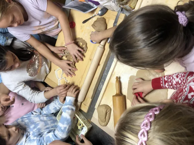 A tevékenységekbe november óta rendszeresen bekapcsolódhatok és az adventi időszakban hagyományosan mézespogácsát sütöttünk, adventi koszorút készítettünk szombatonként pedig kis díszeket, képeslapokat készítettünk. A tanárnő úgy látja, hogy minden évben egy téma köré szerveződik a kézművesség: