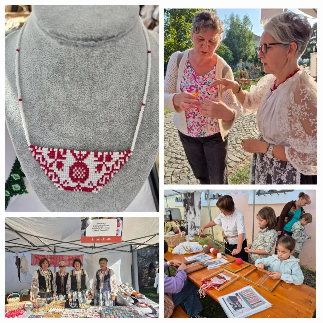 A szeptember 21-22-e között megtartott kézműves találkozón és vásárban Czimbor Izabella szővő, Nagy Klára gyöngyfűző, Szász Ildikó porcelánfestő, Fejér Jolán tojásíró és csipkekészítő, valamint jómagam néprajzkutatóként vettem részt. Vásárról vásárra kiderül, hogy a felkínált sátor egyre kisebbnek bizonyul, hiszen a kézműveseink termékeinek palettája folyamatosan bővül. Éppen a szakmai találkozóknak, a hasonló jellegű vásárokon szerzett tapasztalatoknak, valamint a különböző pályázat nyújtotta lehetőségeknek köszönhetően egyre több kézműves kísérletezik újabb termékekkel vagy technikákkal.