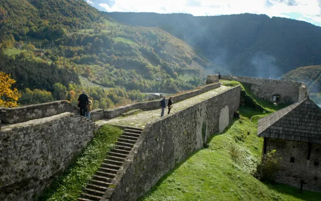 Szerencsére szép, napos idő volt, így lehetőség nyílt a várfal tetejéről gyönyörködni a tájban.