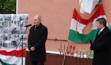 A himnuszok eléneklése után Szalipszki Endre, Magyarország Beregszászi Konzulátusának főkonzula köszöntötte a jelenlévőket. Megemlékezett a forradalom kitöréséről, és leveréséről. Szót ejtett a forradalom utáni megtorlásokról, valamint 1958. június 16-ról, Nagy Imre és társai kivégzéséről. A Beregszászi Konzulátus - a Magyar Kormánytól - pályázat útján kapott támogatásból számos megemlékezést tartott Kárpátalja szerte. Tavaly Beregszászon is felavatták a 60 évvel ezelőtti hősök tiszteletére készült emlékművet, továbbá ennek a lehetőségnek köszönhető a rahói emlékmű is. A főkonzul úr személyesen köszöntötte a jelenlévő Milován Sándor urat, aki Kárpátalján fiatalemberként bátran kiállt az ’56-os forradalom mellett, és vállalta tetteiért a börtönbüntetést is. Élő kapocs ő 1956 és napjaink között. Az ő példája mutatja, hogy az embernek mindig van választási lehetősége. Ez a példa ma is időszerű valamennyiünk számára.
