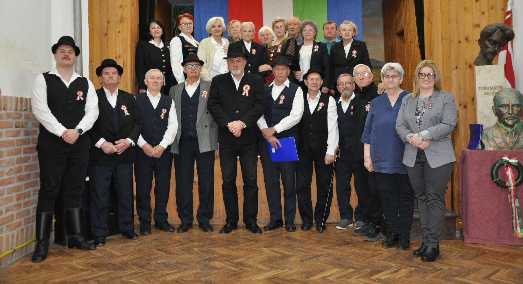 A koszorúzás után az ünneplő helybéli sokaság a falu tanácsterméhez vonult, ahol az ünnepi műsor tovább folytatódott. A köszöntő beszéd után az este Petőfi Sándor: A nép nevében című versével vette kezdetét, majd a Harmatgyöngy Asszonykórus színvonalas előadásában 1848-as katonadalokat hallhattunk. Ezt követően a vérhullás nélküli, de mégis sikeres március 15-i napnak részleteit és érdekességeit bemutató előadást hallgathatott meg a termet megtöltő közönség. A rendezvény kávé, tea és sütemények melletti hosszas beszélgetésekkel ért véget.