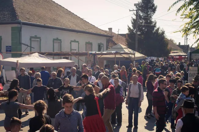 A jó hangulat mellé népzene, népzene mellé néptánc is dukál, így a környékbeli, magyar lakta településekről érkező táncosok fokozták az amúgy sem épp melankolikus szombati napot. A fellépést táncház követte, ahol a Petőfi Sándor ösztöndíjas Izsák Zoltán Sotiris vezette a tánc alkalmat. Zenei kíséretnek a Hertelendyfalváról érkező Csörömpölő zenekar tagjai adták a talp alá valót.