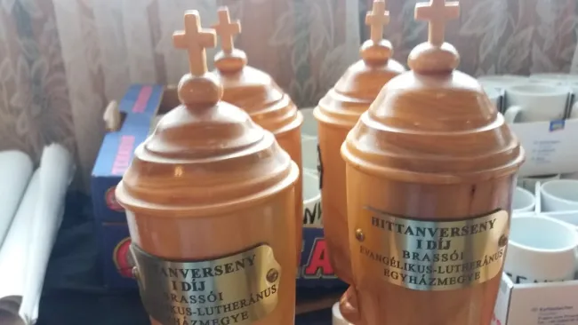 A feladatlapok leadása után finom pityókatokányt kaptak ebédre. Ezután következett a kézműves foglalkozás, ahol gyönyörű virágok, és pillangók készültek, majd modern zenére táncoltunk a lányokkal. Eközben a felnőttek javították a teszteket, és jöhetett a várva várt eredményhirdetés. A díjakat Koszta Enikő brassói lelkész, és Bandi Márta halmágyi lévita lelkész adta át. Minden csapat oklevelet, és minden résztvevő feliratos bögrét kapott. Az első helyezettek ezen felül gravírozott kupával is gazdagodtak.