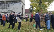 Ezt követően faültetés következett, rituális keretek között. Attila elmondta, hogy az akkor még ültetésre váró két vörös tölgy '56-os emlékfák lesznek. A templom udvarában a terepet az idősebbek készítették elő, az ültetéssel és a fiatal fák gondozásával, öntözésével pedig a szászrégeni fiatalokat bízták meg, hiszen ők, vagy az ő unokáik fognak majd e fák árnyékában pihenni, emlékezni a jövőben.