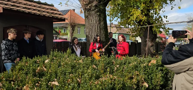 A fiatalok hangja, a magyar versek és dalok betöltötték a szívünket, és akárcsak az őszi napfény, beragyogták a történelmi jelentőségű templom udvarát. A két emlékfa, facsemete elültetése pedig egy újabb fontos láncszem, lábnyom lett a szászrégeni magyar közösség életében.