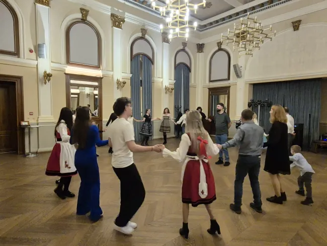 A nagyobbak sem maradtak farsangi szórakozás nélkül. A Tükörterem ismét magyar népzenétől volt hangos, és kisebbek meg nagyobbak egyaránt ropták a szászrégeni tánctanárok, Kovács János és felesége, Erika útmutatása szerint. Elsősorban moldvai csángó táncok lépéseit sajátíthatták el a Nagyszebenből vagy a környező településekről érkező magyarok. Ha már táncházba érkeztek, az egyesület felhívására is reagálva, többet vették fel viseletüket, amely jelezte a család gyökereit is, azaz honnan származnak a szórványvidékre kerültek vagy felmenőik.