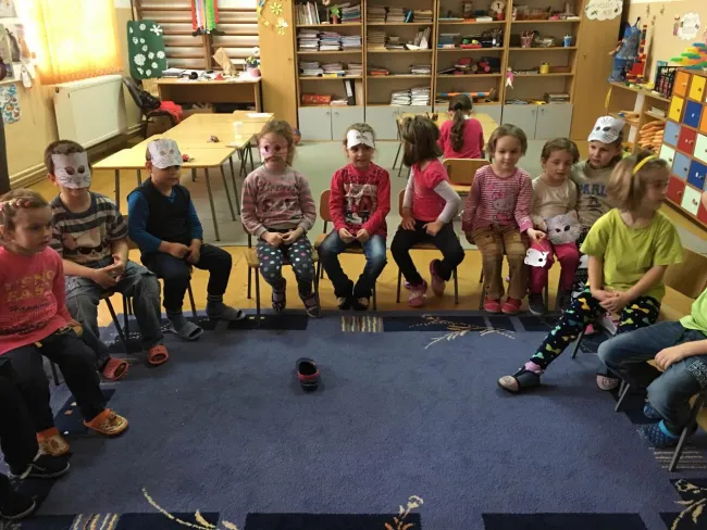 Az óteleki magyar óvodásoknak szórakoztató, farsang időszakához kötődő programot állítottunk össze. A gyermekekkel együtt farsangi jelmezeket készítettünk. Volt, aki kisegér, volt, aki cica, mackó vagy éppen pillangó szeretett volna lenni. Mindenki lelkesen színezgette a maszkokat. Ezután érdekes gyermekjátékokat játszottunk, mint például a „Tyúk ütés”: egy piros kis fazekat lefordítottunk a szőnyegen, két gyereknek bekötöttük a szemét és adtunk egy fakanalat a kezükbe, az nyert, aki a fakanállal megtalálta a fazekat és ráütött. A „Székfoglaló játék” lényege: zenére körbejárták a székeket, ha elhallgatott a zene, le kellett ülni, amelyik szék előtt álltak, a székek száma mindig eggyel kevesebb, mint a gyerek, aki nem talál helyet, kiesett, és egy székkel megint kevesebb lesz... Addig megy a játék, míg a végére egy gyerek marad.