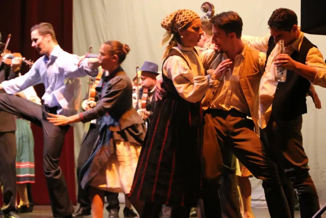 A Háromszék Táncegyüttes valóban „sajátosan groteszk, a prűdeket meghökkentő, nyitottakat megnevettető” mezőségi lakodalmat megidéző előadásáról én magam legalábbis az érzelmek teljes skáláját megélve vittem haza magamban felejthetetlen táncszínházi élményem. A Traube terem megtelt, a város apraja-nagyja kíváncsi volt a méltán népszerű előadásra, melyet 2013-mas bemutatása után idén közkívánatra tűztek újra műsorra és így hosszú évek után ismét a turné egyik helyszíne lett Medgyes. A szervezők helyi partnerei a MADISZ és a Gyöngyvirág Néptánccsoport voltak.