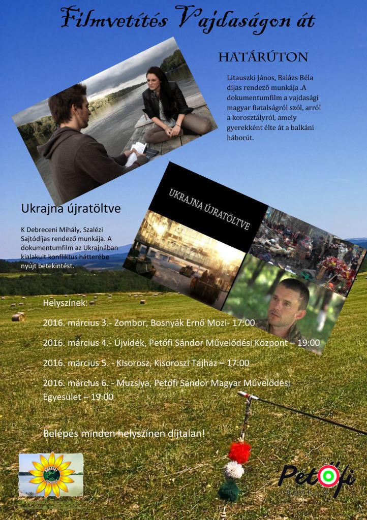 Március 3-án a zombori Bosnyák Ernő moziban vetítették a Határúton és az Ukrajna újratöltve címet viselő dokumentumfilmeket. A  szervezők nevében Pelt Ilona, a Dunatáj Egyesülés titkára és Szabó Sándor, a Petőfi Sándor Program ösztöndíjasa köszöntötte a népes közönséget, a telt házas vetítés előtt.