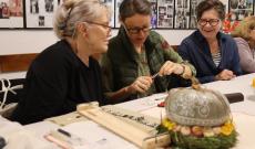 A mostani alkalmon karácsonyi textilek és aprólékos, régi kézimunka-hímzések kerültek a díszgömbökre. A foglalkozást Bódi Henrietta vezette, akinek lelkesítő útmutatása mellett a résztvevők nemcsak új technikát tanultak, hanem a fonó közösségi hangulatát is újra átélhették.