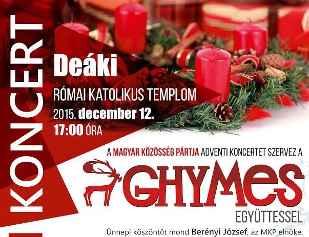 A Magyar Közösség Pártja adventi koncertet szervezett a deáki római katolikus templomban 2015. december 12-én. A rendezvény védnöke Berényi József, az MKP elnöke volt. Zsúfolásig megtelt a deáki katolikus templom. A közönség soraiban köszöntötték Czimbalmosné Molnár Évát, Magyarország pozsonyi nagykövetét, Deáki polgármesterét, a szomszédos települések elöljáróit, a felekezetek képviselőit, az MKP elnökségét és a koncertre ellátogatókat is.