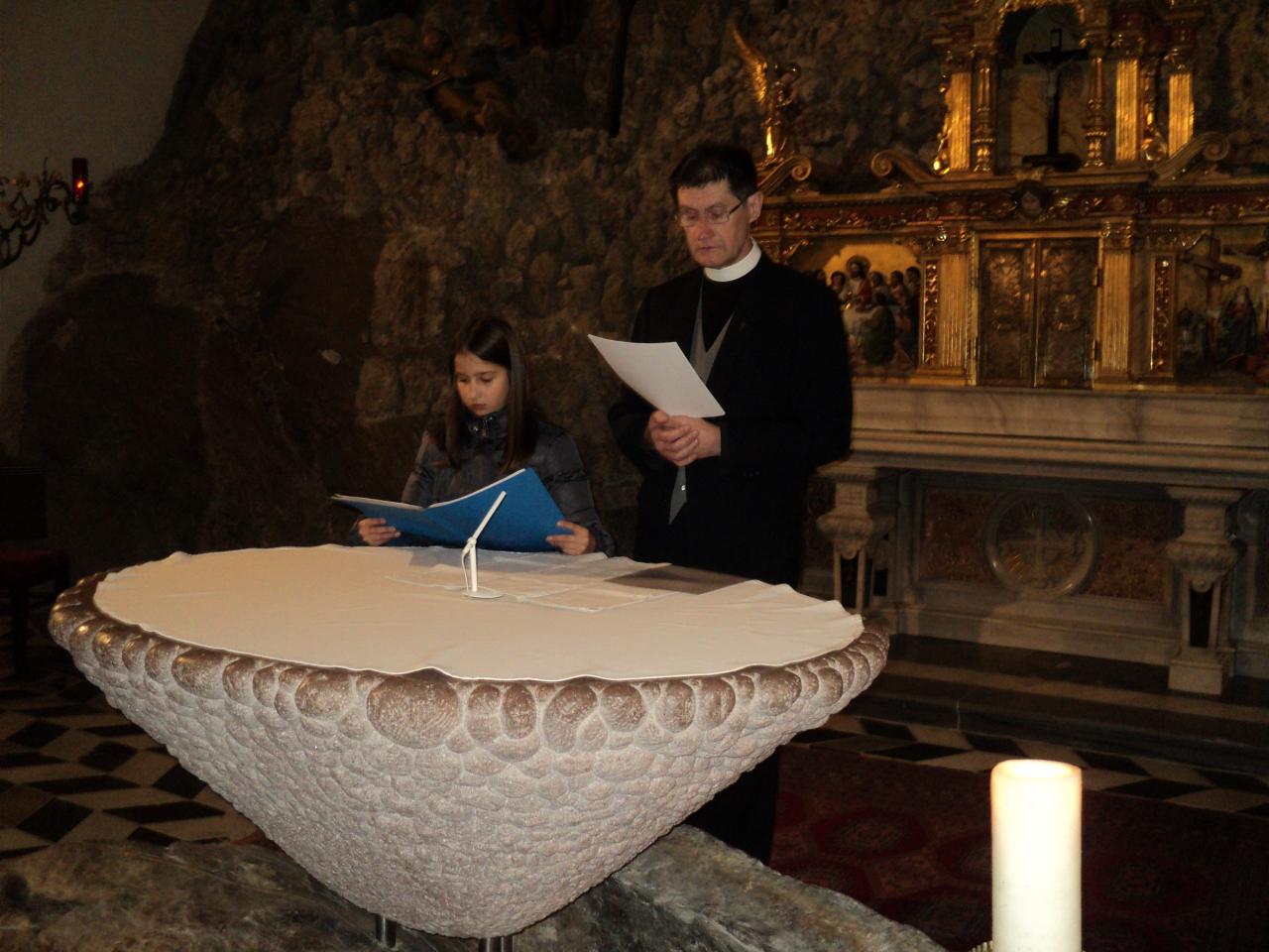 Csodaszép volt látni és hallani, hogy az elmélkedések tolmácsolásából a közösség milyen sok tagja kivette a részét (nagy megtiszteltetés e sorok írójának, hogy ebbe szintén bekapcsolódhatott). Mint ahogy az is valóban különös élményt jelentett, ahogyan a keresztutat követő szentmisében a Miatyánk közös elimádkozására Ottó atya az oltárhoz hívta a kisgyermekeket, akik egymás kezét fogva mondták Az Úr imádságának szavait.