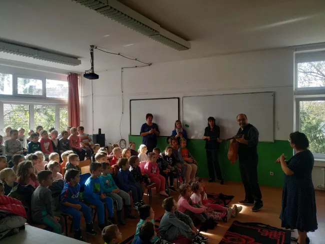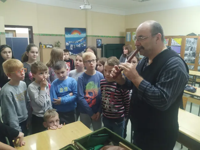 Bár még melegek a napok, az advent itt kopog az ajtónkon, ezért a muzslyai gyermekek Jézus születésének történetét hallhatták úgy, ahogy az a nép száján keringett. A mesét kis énekek, duda- és furulyaszó tették izgalmassá. Délután magyarszentmihályon főleg a hangszerekre terelődött a hangsúly, hisz ezek eredetéről szólt a mese is, a kisiskolások pedig el nem engedték Zoli bácsit addig, amíg meg nem mutatta az összes hangszerét, amit bőröndjében tart. Persze itt sem maradtak el a kánták és betlehemes dalok, amik lassan minden jelenlévő száján felcsendültek.