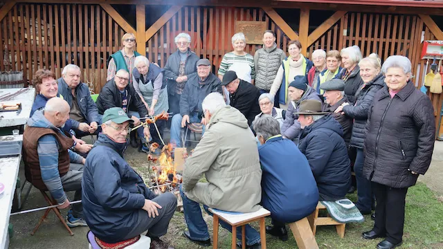 Az időjárás is kedvezően alakult: a hideg, szürke, ködös napok után éppen Vincékor kezdett melegedni az idő, és előbújtak az első napsugarak. Ezt kihasználva az udvaron kolbászt és szalonnát sütöttünk, hogy éhségünket csillapítsuk és jókedvünket fokozzuk.