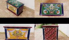 Messzire kerültem Hétfalutól, Felvidékre, ide jöttem férjez. Férjem gyűjtő utakra járt, a népi harci testkultúra témában, így nagyon sokszor vele tartottam. Éppen a felvidéki gömöri részt gyűjtötte, és hát idős házaspárokkal beszélgettünk gyakran a régi világ témában, így néha szó esett a tulipános, kelengyés ládákról, sikerült is fotózni párat. Innen jött az ötlet, mivel a színvilág is, mintázatuk is eltérő azoktól, amiket én tanultam. Ha sikerült olyan faluba érkeznünk, ahol tájház, illetve múzeum is volt, oda is befordultunk ez ügyben. Össze is gyűlt jó pár láda minta, azokat kicsit újradolgozva kezdtem el festegetni, így kialakult egy gömöri mintakincsem, ami szerintem még nem teljes, lenne még mit gyűjteni vele kapcsolatban.