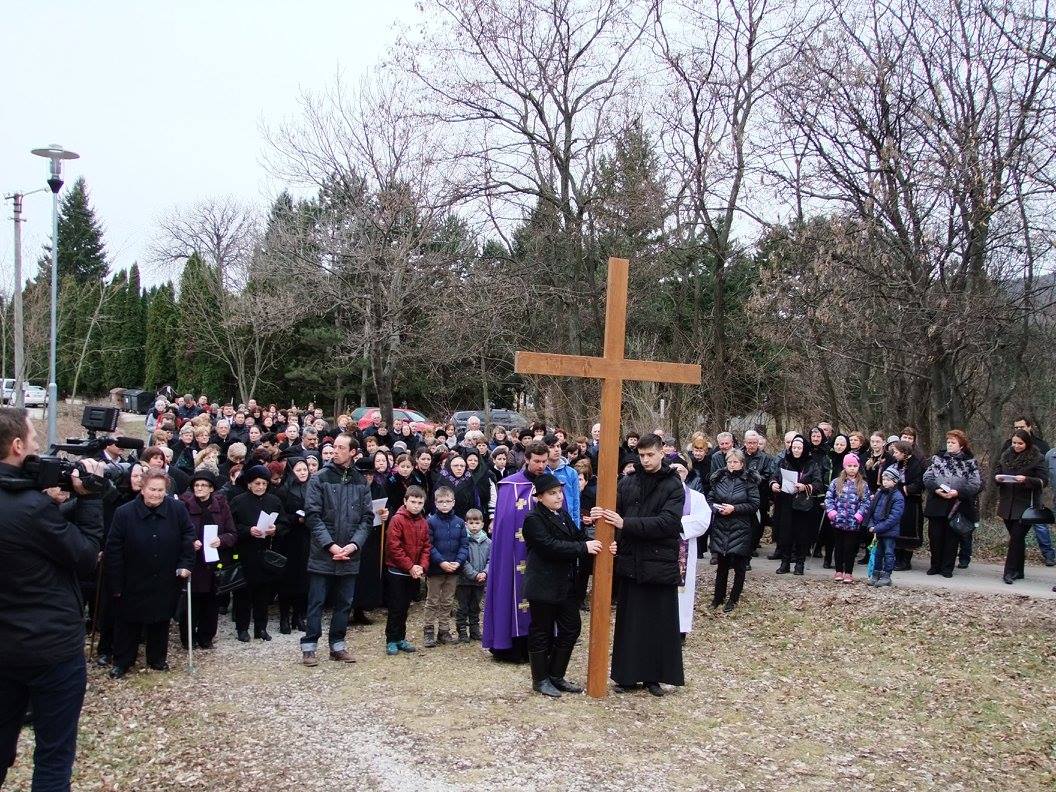 A keresztutat egy rövid szertartás követte, melyben Márk atya meghívta a résztvevőket a Szent László év következő programjaira és figyelmeztetett minket, hogy elindultunk a böjt útján és ahogyan a stációkat is végig jártuk, ugyanúgy ne hátráljunk meg és a böjti napokon csak a húsvéti feltámadás legyen a szemünk előtt.