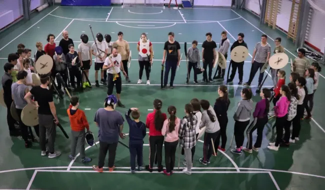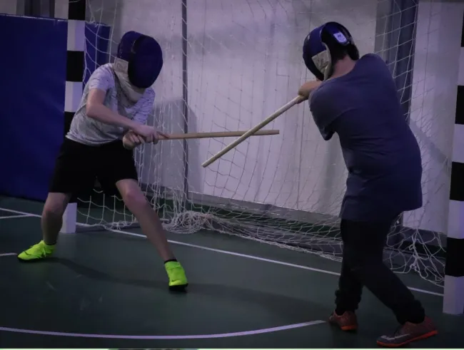 A foglalkozások botos ritmusos ügyességi játékokkal kezdődtek, amelyek egyrészt a kétkezes eszközhasználatot csiszolták, másrészt a két kézre, és a szemben álló ellenfélre való összpontosított figyelmet, a szemünk sarkából látást gyakoroltatták. Ezen felül a közösséget is összerendezte ez a gyakorlat, s egy ritmusban tudtunk mozdulni. Később ezekre a készségekre építettünk. A továbbiakban volt botos kidobó, pajzsos-botos kidobó és ennek kis egységes harcászati változata, mikor egy 2-3 fős csapatnak egymást kell megvédenie a labdák záporától. Csoportbontásban foglalkoztunk késharccal és szablya-pajzs vívással is. Csoportos küzdelmekkel, csatákkal zártuk az órákat. A nagyedzésen tappancsos nyílvesszőkkel íjjal én is beszálltam, és ezzel még több taktikázást vittem bele a játékba.