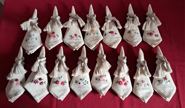 A hímzéseket a Fogarasi Református Egyházközség Nőszövetségének elnöke, valamint a fogarasi felügyelő felesége, Grépály Ida készítette, míg a szalvétagyűrűk elkészítésében a Bornemissza Anna Nőszövetség tagjai vettek részt. Külön öröm volt megtapasztalni, hogy az ajándékok elkészítése tovább erősítette a Petőfi Sándor Program fogadószervezetei közötti együttműködést.