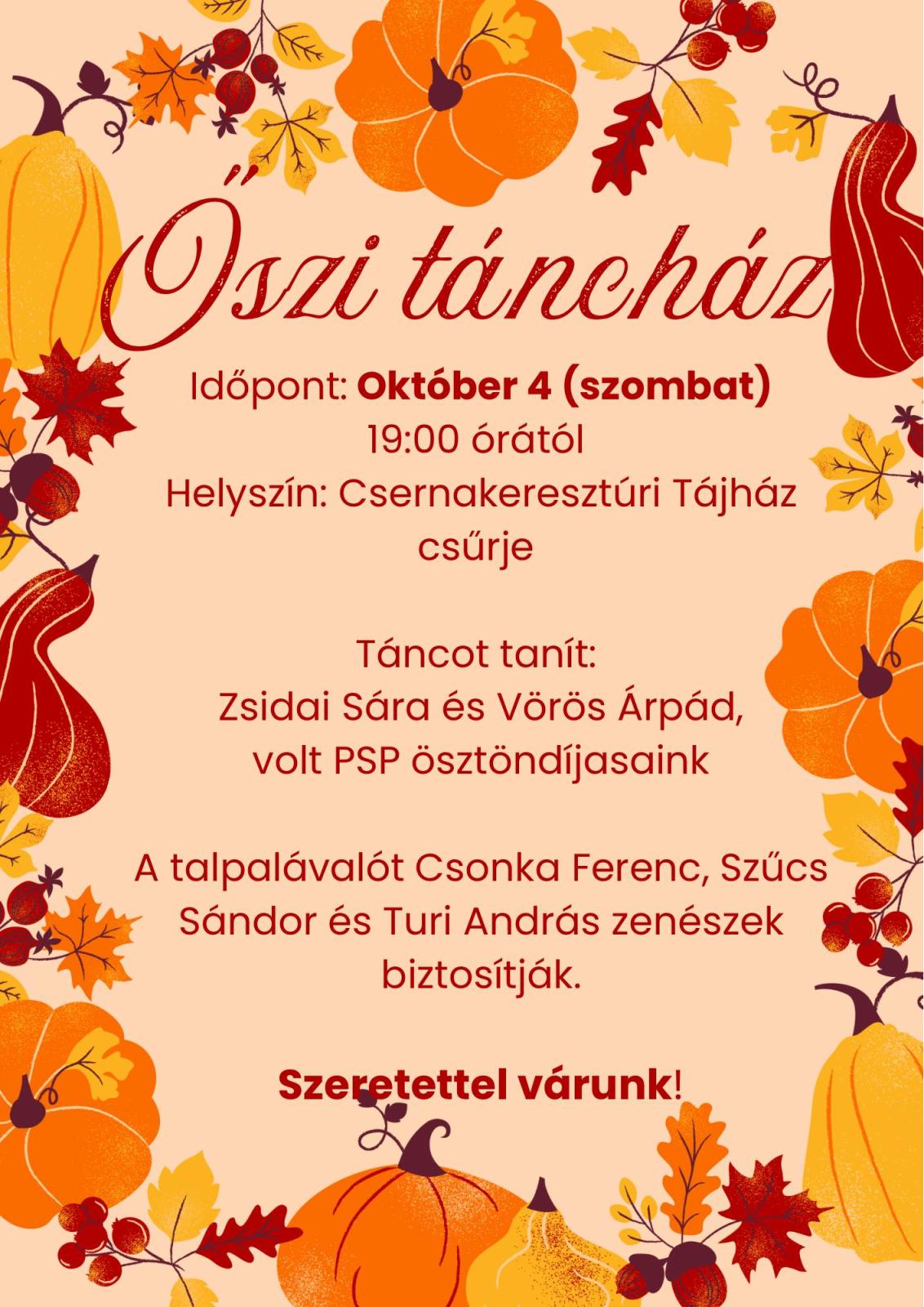 A zord idő ellenére szép számban gyűltek össze a Csernakeresztúri Tájház Csűrjében a népzene és néptánc szerelmesei az október 4-én este 7 órára meghirdetett Őszi táncházba, amelyet Zsidai Sára és Vörös Árpád személyben egykori Petőfi-ösztöndíjasok tartottak.