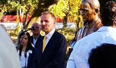 Szombat reggel már a gyönyörű napsütés is jelezte, hogy sikeres, szép napunk lesz. A Magyar Közösségi Házban már ekkor gyülekeztek a szervezők. A nagyteremben megterítették az asztalokat és előkészítették a termet az állófogadásra. 12 óra után megérkezett a pozsonyi testőrség és a helyi rendőrség is. A fővárosi küldöttség leellenőrizte a hely biztonságosságát, az ételek fogyaszthatóságát. 13:00 óra után lassan érkeztek a Herczegh család tagjai. Elsőként Herczegh Melinda, Herczegh Géza özvegye érkezett, majd Herczegh Károly, Géza és Melinda fia lépett be a kapun családjával. 14:20-kor érkezett Herczegh Anita, Károly testvére, majd rögtön utána az ő férje, Áder János, Magyarország köztársasági elnöke érkezett rendőri és testőri kísérettel.