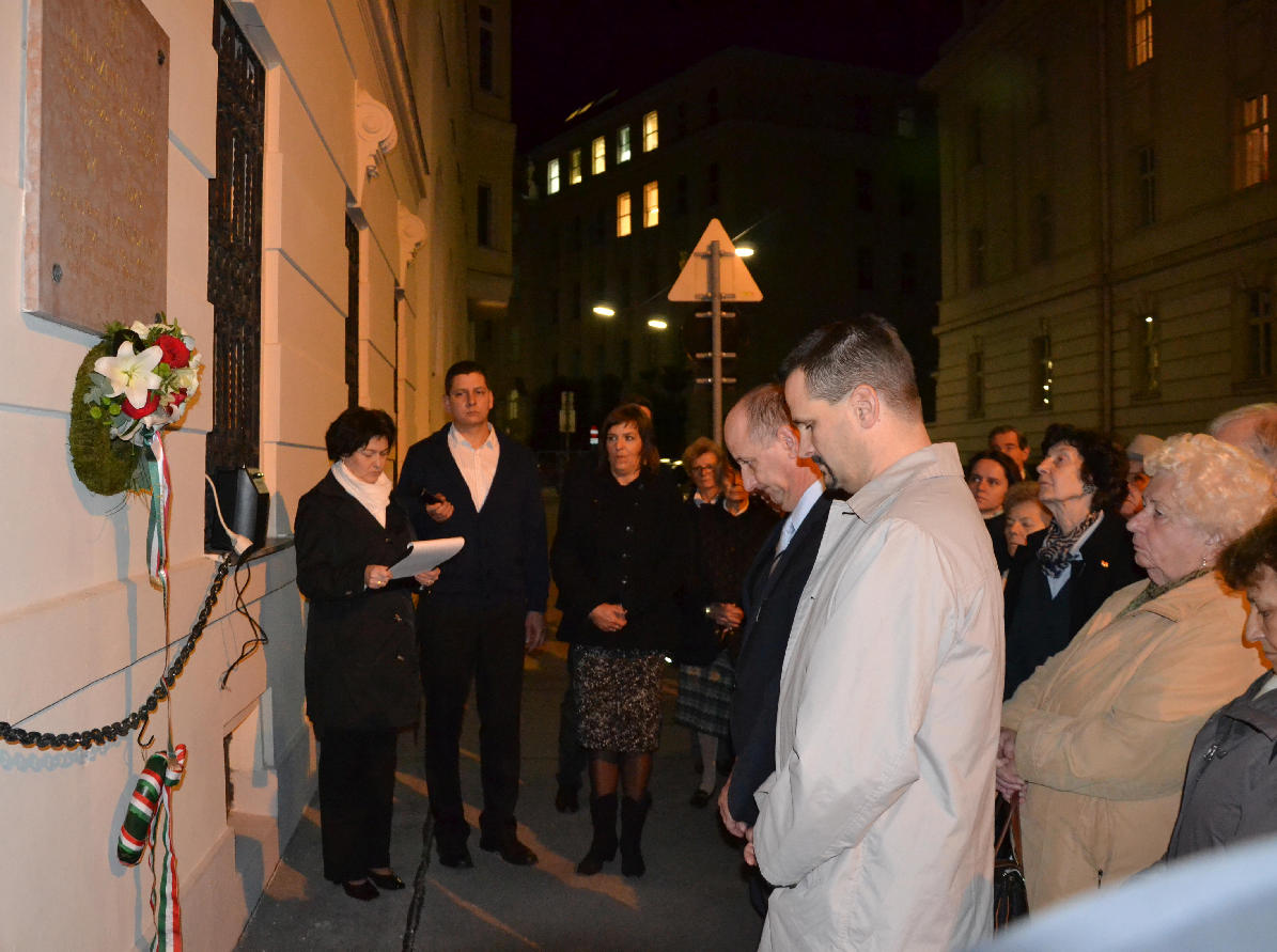 Az Isten hazánkért térdelünk elődbe kezdetű ének eléneklése után a közösség a Pázmáneum bejárata mellett elhelyezett emléktáblánál folytatta a megemlékezést.