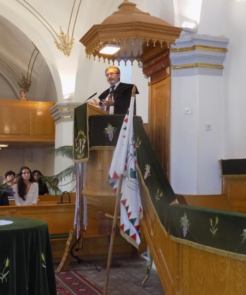 Az ünnepélyes istentisztelet az esperes úr igehirdetésével kezdődött, aki a beszédében az idei év fontosságáról beszélt a gimnázium életében: „Különlegesen fontos a 2016-os esztendő az iskola életében, mert ebben a tanévben ünnepli a gimnázium fennállásának a XV. évfordulóját. Ma az iskolánk pedagógusai ugyanazzal a hittel, szeretettel próbálják végezni a feladatukat, mint ahogy azt eddig is tették az elmúlt években az alapítás óta. Az elmúlt esztendők során azonban sokszor merülhetett fel a kérdés, hogy megtérül-e a befektetett energia: Isten számtalanszor próbára tette a diákokat, pedagógusokat, és a fenntartó egyházat is, de Isten segítő karja mindig éppen időben érkezett." Az esperes úr igehirdetésének zárszavaiban Isten áldását kérte az iskolára, a magyar népre és nemzetünkre, hogy megmaradjunk.