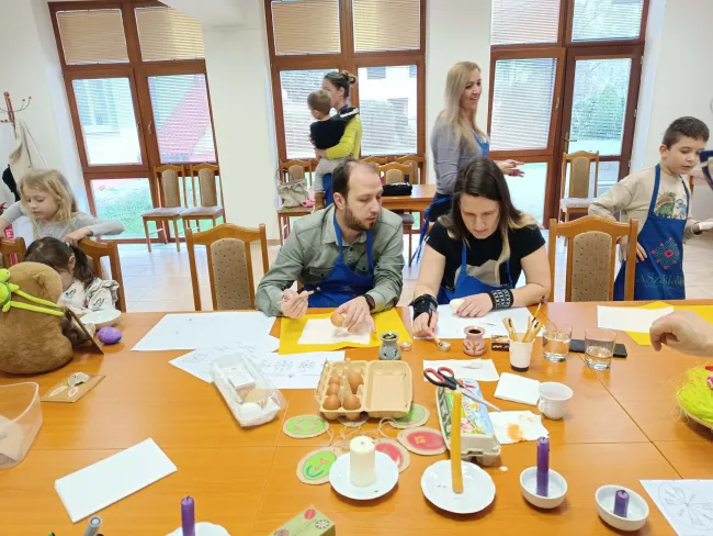 2026. március 31-én, kedden pedig húsvéti játszóházat szerveztünk Szolard Viktóriával, a galántai Mezítlábas Pajtások gyermekkórus vezetőjével és a pozsonyi Vox Posoniensis magyar kórus megálmodójával és Horváth Judit mentorom támogatásával, ahol amíg a szülők és a nagyobb gyermekek a hagyományos magyar tojásírást gyakorolhatták, a kisebbek életkoruknak megfelelően egyszerűbb kézműveskedésben, tojásfestésben és játékban lelhették örömüket.