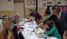 Keveváron nagy örömünkre hét gyerek jött el a foglalkozásra. Sikerült sok nyuszival kapcsolatos éneket közösen megtanulni és néhány ablakdíszt is készíteni a plébánia ablakaira.