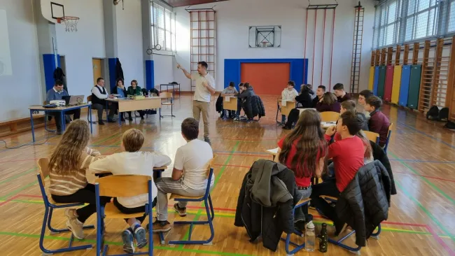 November 19-én reggel szervezőtársaimmal a Lendvai Kétnyelvű Középiskolába tartottunk, ahol 4 csapat (csapatonként 2 fő) mérte össze a délelőtti órákban a tudását a megadott történelmi témakörben.