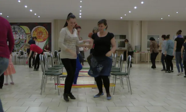 Ezeket a segédanyagokat a pedagógusok megvásárolhatták a foglalkozás után. Az eredmény szempontjából fontos, hogy a közös mozgásban, énekben felfedezzék a gyermekek az örömöt. A négyórás képzés remek hangulatban telt, s játék közben tanulhattuk meg a néptánc alaplépéseit. Ezeket a népi játékokat biztos vagyok benne, hogy a magyar alapiskola tanóráiba is integrálni fogják Tornalján, hiszen ennek segítségével rengeteg örömet adhatunk a felvidéki magyar gyermekek számára. A képzést a lelkes és mosolygós Bárdos Zsuzsa tartotta a felvidéki pedagógusoknak, akivel volt szerencsém egy rövid interjút is készíteni, amely a galériában lesz megtekinthető.