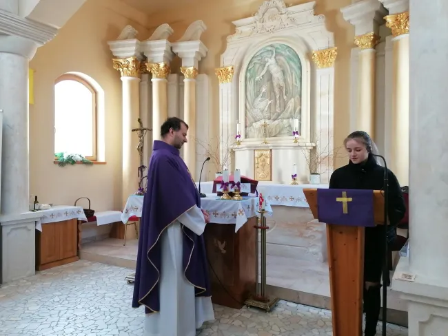 Az ipolysági középiskolások a Szent Kereszt Felmagasztalása kápolnában szentmisén vettek részt, melyet Gyurász Pál atya mutatott be Isten szolgája Esterházy János boldoggá avatásának szándékára és a fiatalokért ajánlva a legszentebb áldozatot. A szentmisében felidézte saját személyes élményeit, hiszen ő is itt lehetett a 2017-es temetési szertartáson és buzgón ápolja tiszteletét lelkipásztorként. Arra buzdította a fiatalokat, hogy a nehézségek megélésében legyen példa és megerősítő remény Esterházy János hűséges és bátor helytállása és minden időben Isten akaratát keressék. Számukra is a kereszt legyen az örök érvényű jel. Keresztény hitük és magyarságuk pedig olyan kincs, melyhez mindig ragaszkodjanak. Az altemplomban a csoport koszorút helyezett el Isten szolgája sírjánál. Reméljük, ez a hely visszavonzza majd őket! Szeretettel köszönjük a látogatást a csoportnak és kívánunk áldott nagyböjti időt és Húsvéti ünnepeket!