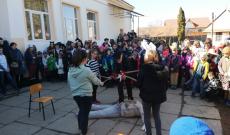 Kedden kicsik és nagyok beöltözve várták, hogy induljon a nagy farsangi felvonulási menet végig a városon, amelynek végső állomása a kisiskola udvara volt. Hétágra sütött a nap, az időjárás is megérezte, mire készülünk. Az udvarra érkezve a beöltözött csapatnak egy „téltemető szerepjátékkal” kedveskedett a - vendég és hazai - diákokból összeállt csoport. A humoros színjáték után pedig elégették a telet szimbolizáló szalmabábut, ezzel pedig eltemettük a telet. A télbúcsúztatóról nem hiányozhatott a fánk sem. Délután a tornateremben farsangoltunk, ahol a legszebb, legötletesebb jelmezeket díjazták. A diákok jót buliztak, még akkor is, ha tanáraik komolyan felügyelték a program menetét.