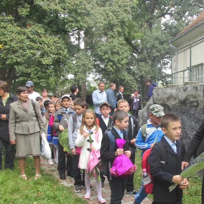 Sylvester Aba, olthévizi református lelkész áldása után elbúcsúztak az óvodától az friss előkészítő osztályosok. Nagy Enikő óvónő bekísérte az öt kisiskolást az épületbe, és rábízta további nevelésüket Sultănescu Emőke tanítónőre.