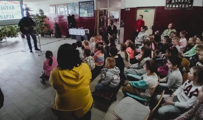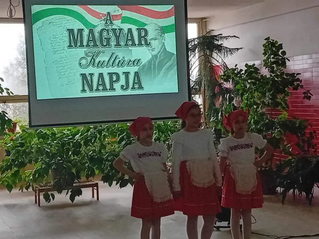 Az almágyi alapiskolában sokrétű előadásra került sor, a dalok között a diákok verseket, népdalokat, és népmesét adtak elő.