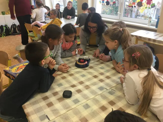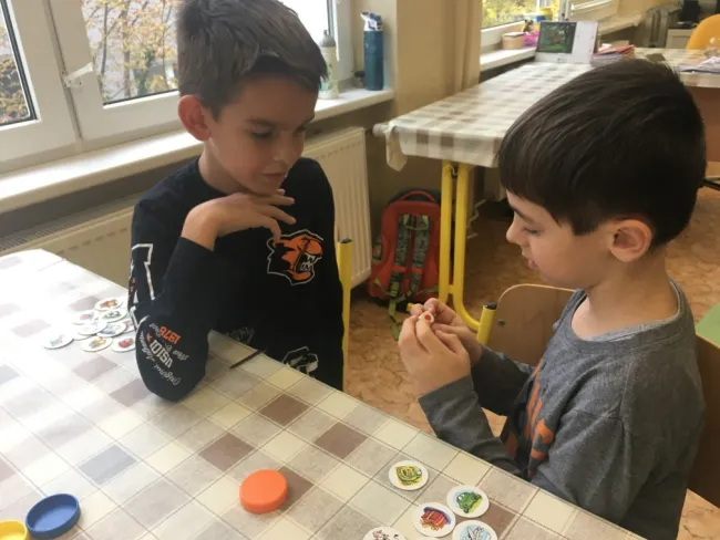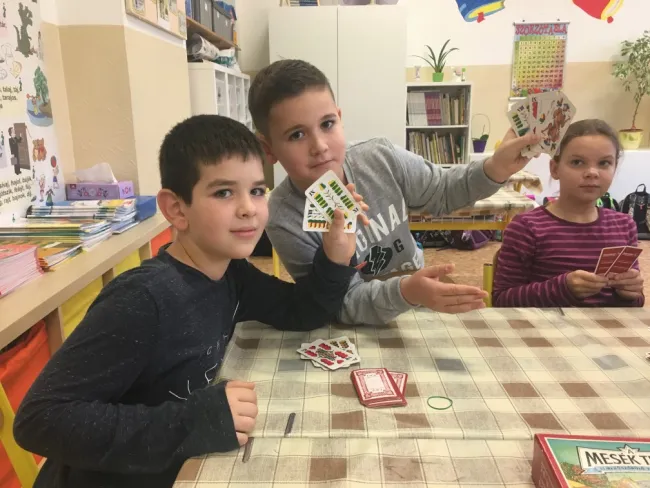 Pap Boglárkával, a pozsonyi Petőfi Sándor Program ösztöndíjasával együtt készültünk erre napra. A Szenczi Molnár Alapiskola Tudomány hetét tartott a gyerekek számára, de egy kis móka is belefért a fizikai és földrajzi jelenségek tanulmányozása mellett. Az alsó osztályosok olyan játékokat ismerhettek meg, amivel még mi játszottunk gyerekként. Főleg memóriajavító játékokkal szolgáltunk és a legjobb, hogy a tanítónőkkel és velünk együtt kártyáztak, játszottak a diákok. A csengő után pedig ki sem akartak menni az osztályból. Sőt az első osztály kétszer is visszajött hozzánk. Így legalább egy órán keresztül játszottak, figyeltek és segítették egymást. Meggyőződésem, hogy a hétvégén sok családnál előkerültek a kártyapaklik, játéktáblák.