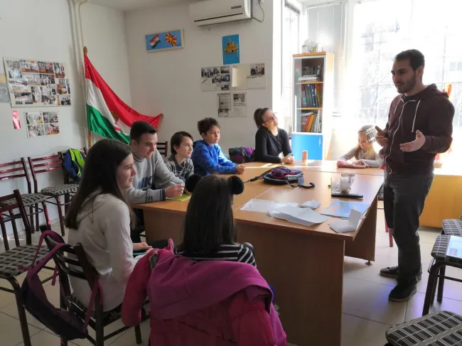 A macedóniai magyarság létezése és története kevéssé ismert még a honismeretben jártas hazafiak, 56-os kivándorlók, és nem utolsó sorban a vajdasági magyarok körében sem. Az utóbbi csoportból érkezvén, én sem voltam minden fontos információ birtokában kiérkezésemkor. Szerencsére Horváth Milán volt ösztöndíjas, és hungarológus kollégám 2014-es cikke megfelelő (mellesleg mai napig érvényes) kiindulási pontot nyújtott az érdeklődésem kielégítésére. Így megtudhattam, mennyi különböző helyről (pl. a Vajdaságból is) és periódusban érkezett, majd hogyan fejlődött ki e pár száz fős magyar közösség, továbbá azt is, hogy nyelvtanári vénámra igencsak szükség lesz, mert a kint született generációkra már nem jellemző, hogy folyékonyan beszélnék a magyar nyelvet. Számos, speciális identitáskonstrukcióval lehet találkozni, és ez a változatosság ad szépséget az emberekkel való munkában, mert mindenkinek van egy története, amit meg akar osztani, és mindenkinek máshogy és más okból fontos (vagy kevésbé fontos) a magyarsága. Ez így van rendjén.